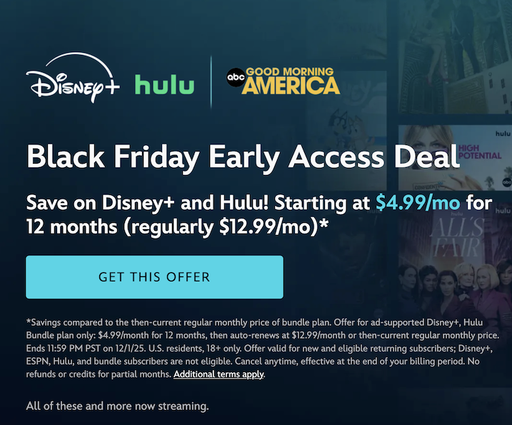 Article Link: Black Friday Streaming Deals Include Big Savings on Disney+, Hulu, Apple TV, and More