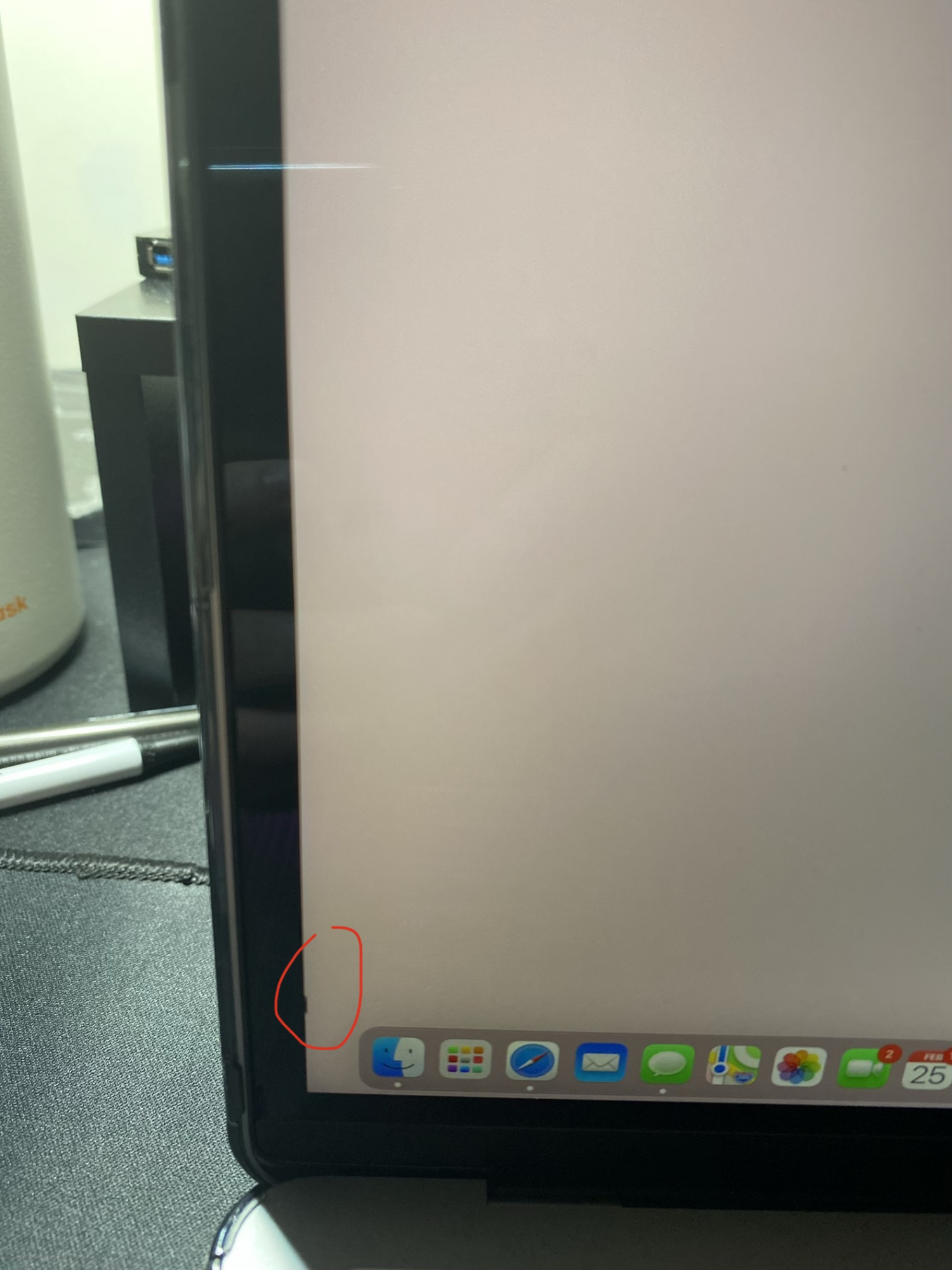 Hey there. Have any of you seen this marking on the left side of your 2020 MBP 13 inch display before? (I circled it in red.) I tried changing my wallpaper and it still was there. So I figured its something to do with the actual display itself?