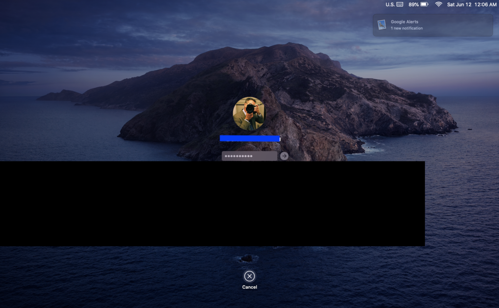 Thanks for your help, DeltaMac! The night shift was off, but I ran an update which showed up just as on queue and while literally fiddling with three pics they have for dynamic wallpaper the black rectangle vanished. So, no more black boxes on my screen.