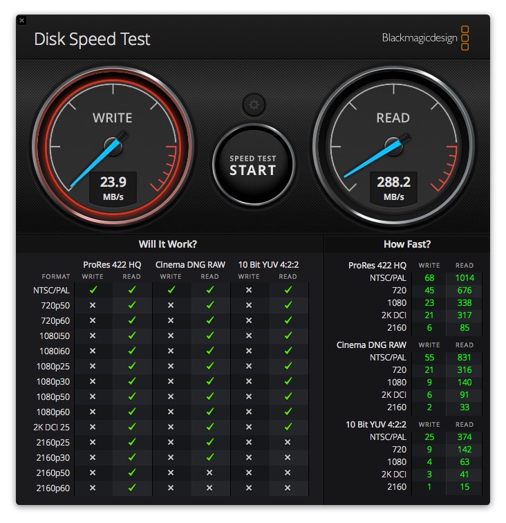 My first results were showing around 360MB/s write and 490 odd MB/s read. Now, they are showing anywhere between 145 and 200 or so. While determining the speed it does momentarily shoot up to around 270-280MB/s but doesn't stay there.