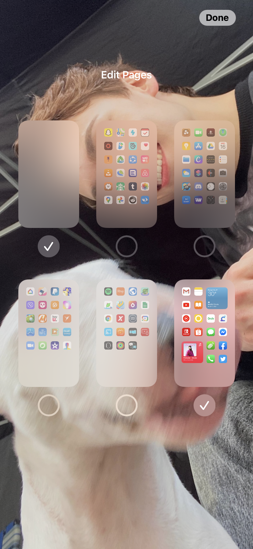 go to edit home screen (when the apps jiggle) and then tap the page indicators just above the dock....how do I get to this screen then (where you have to 'check' the pages)?