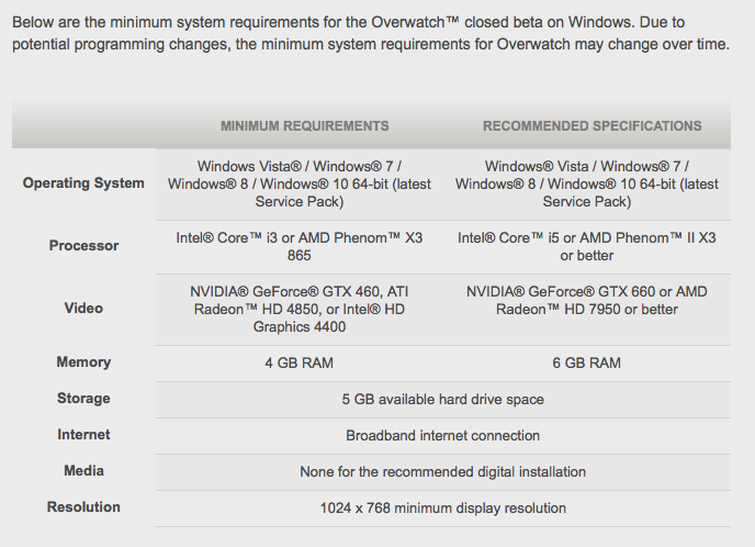 Have you even looked up the specs that are currently required/recommended for the Overwatch beta?