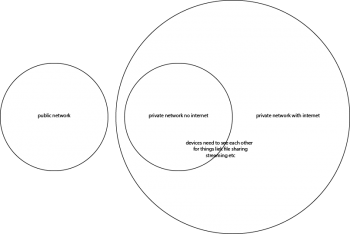 Trying to have some devices in the home network that will have no internet access both incoming and outgoing. But at the same time I want those devices to be able to have access to local network shares / services. is there a way to do this? I am open to investing in networking gear. Please see attached image.