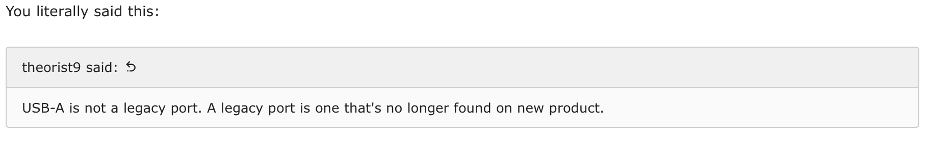 You can argue all you want, USB Type-A is not a "current port" It's not (and hasn't been for 18 months) part of the latest USB specification (4.0). That doesn't mean you can't use them, or that you shouldn't buy products that have them. But they are by definition, legacy ports.