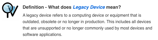 In fact, it being in use on a range of products (and thus "difficult" to replace) is part of the definition for "legacy" (referring to hardware or software) in Oxford dictionary, and someone (you) disagreeing that it's even considered legacy, is part of the definition of "legacy port" from Wikipedia.