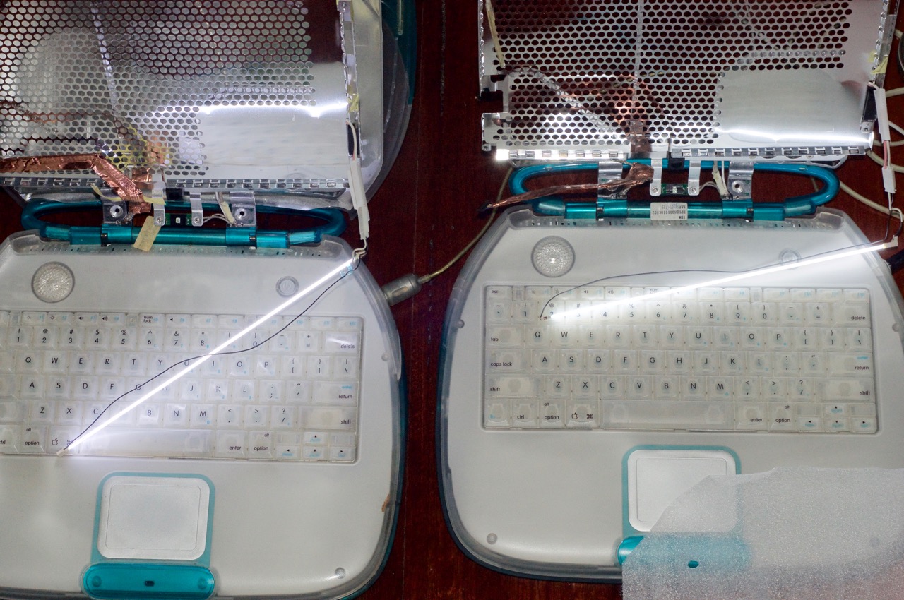 I decided to tackle the repair of my beautiful Blueberry Clamshell iBook which just keeps getting darker and darker as the years go by...