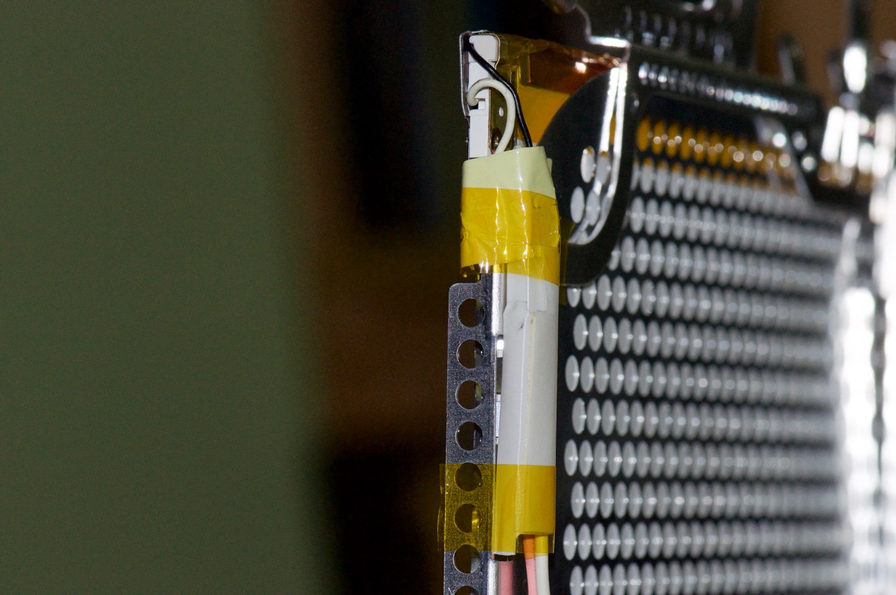 20. I then installed the tube and reflective channel into the LCD panel. Initially it wouldn't sit very flush, so I seated things down with some Kapton tape here. The high-temps shouldn't affect the tape.