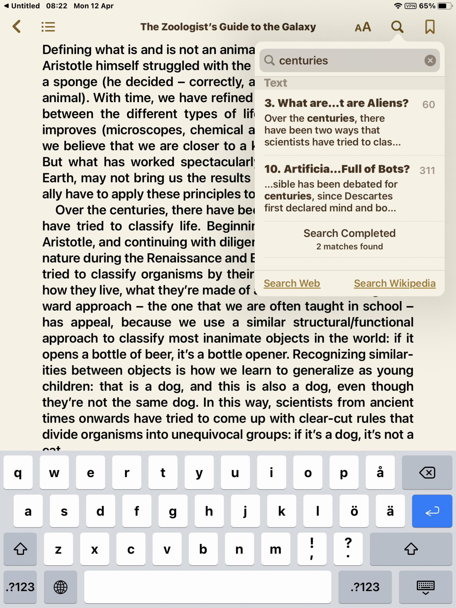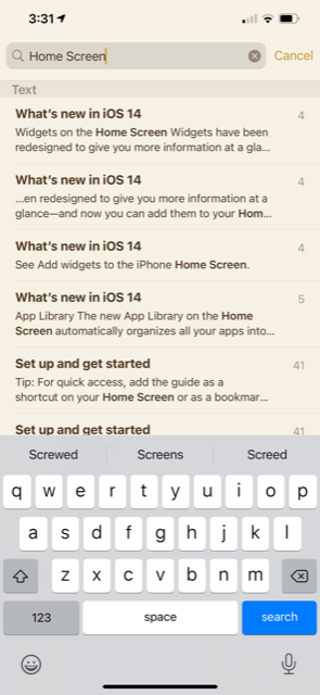 I have a Books app question: is it just me or is the 'search ' function in books meaningless? When I try (iPad or MBP) to search an Apple Manual (iPhone OS or MBP) for say 'Screen shots' or even 'index'....nothing! Or just a list of the word as used in the contents??? Try it! Its as if the search function does nothing...or am I missing something?Are you referring to non iTunes purchased pdf/epub? Those, I save in iCloud Drive.