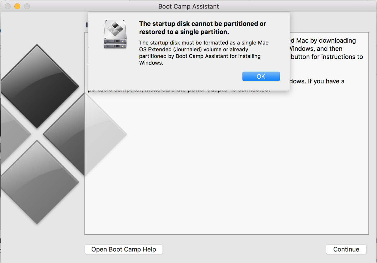 I opened up boot camp, then click continue. As I've read and watched tutorials, mine didn't show this.