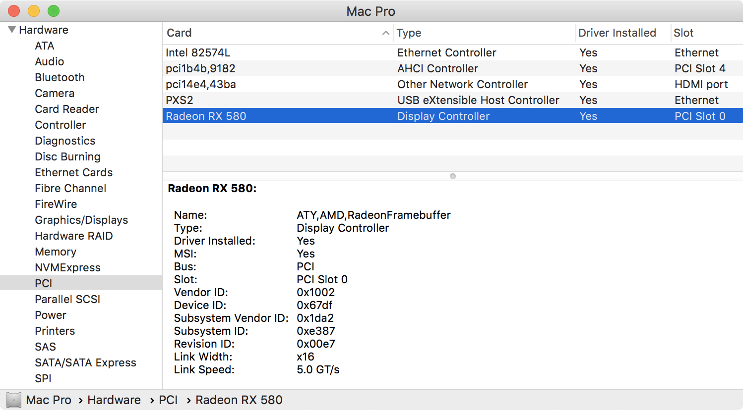 0:119 0:000 PCI (00|05:00.00) : 1002 67DF class=030000