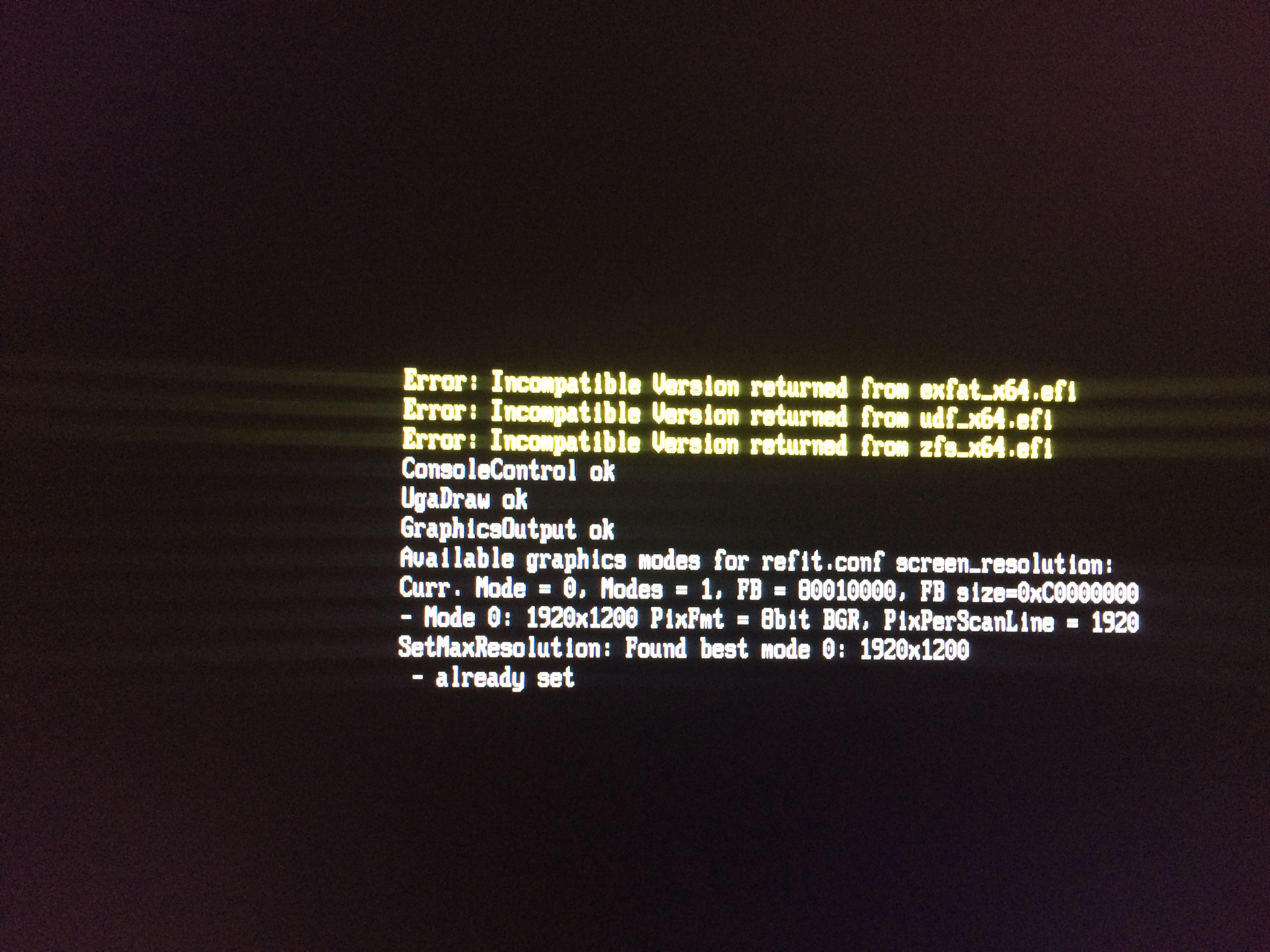 4:584 0:470 Error setting graphics mode 1024 x 768; using default mode!