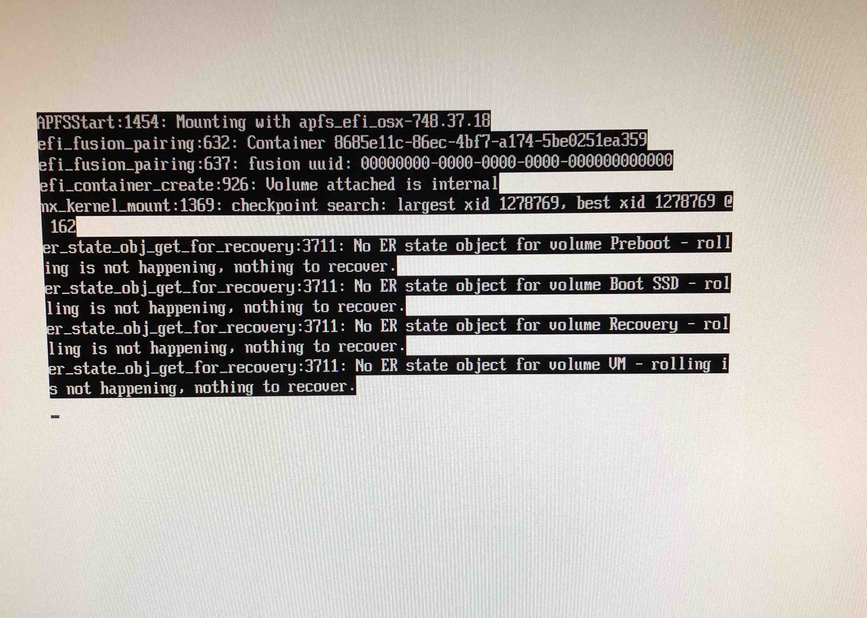 Following my update to High Sierra (which included the required firmware update to my 4,1 -> 5,1 tower), my boot screen is filled with verbose text. This occurs prior to the "Apple" logo, at which point the text disappears.