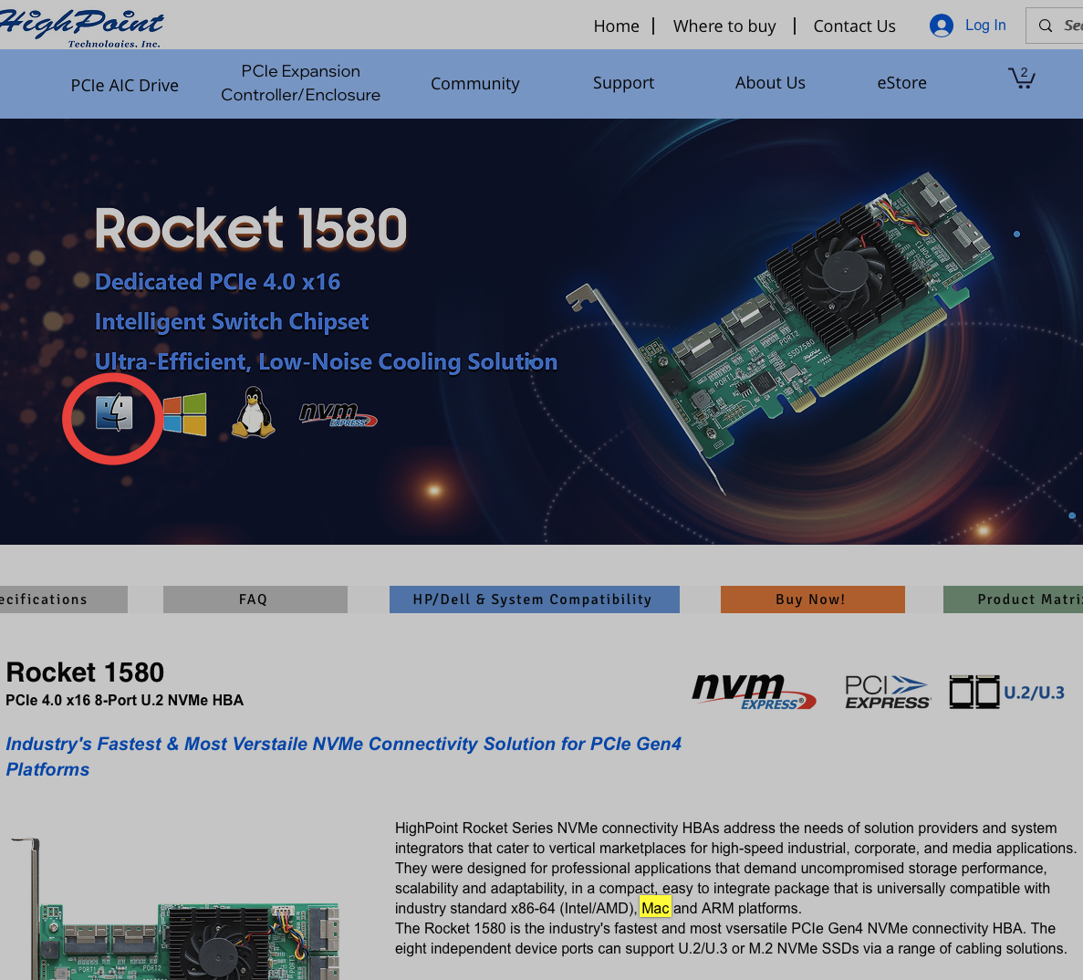 Anyway, they just informed me, get this, that the Highpoint 1580 does not support macOS: