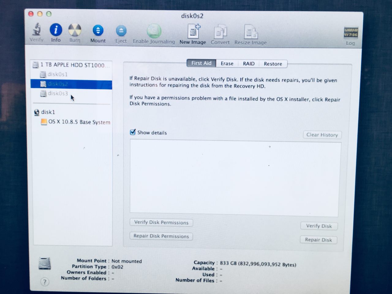 Disk: /dev/disk0 geometry: 121601/255/63 [1953525168 sectors]