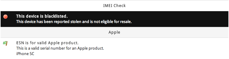 I purchased an iPhone 5c on eBay and checked the IMEI/MEID numbers on a site called "swappa" and it says the phone has been reported as stolen and is blacklisted. I've checked other sites and it didn't say anything about it being reported as stolen.