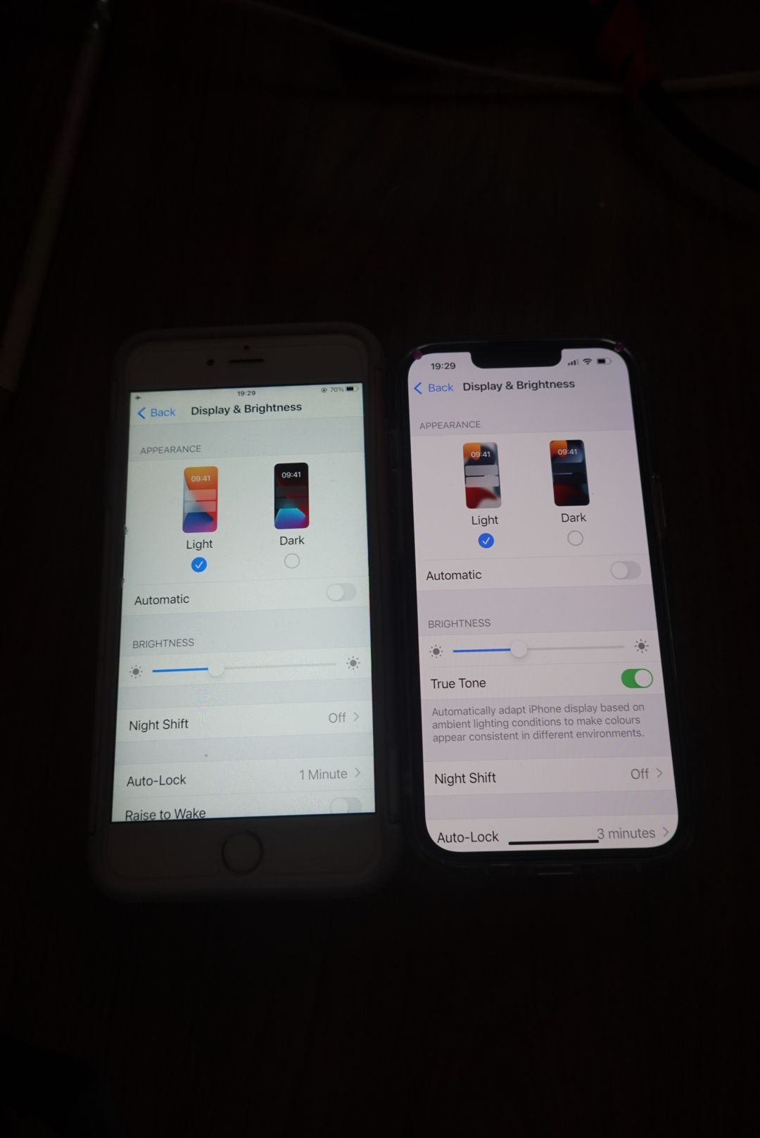 True Tone is on and Automatic appearance is off