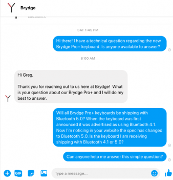 Finally an honest answer! Thank you BrydgeApparently, they haven't responded to the BT inquiry, or anything for that matter. They must be taking this Apple rollout hard. It's unfortunate, but considering the price difference and other things, i'm thinking in the long run they will be looking good.