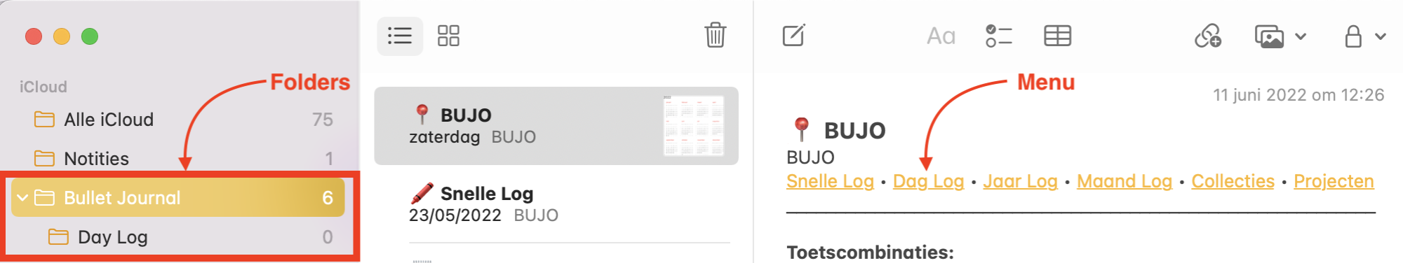 So I connected some dots, and as a way of practicing and having fun, I built a digital Bullet Journal system within Apple Notes.