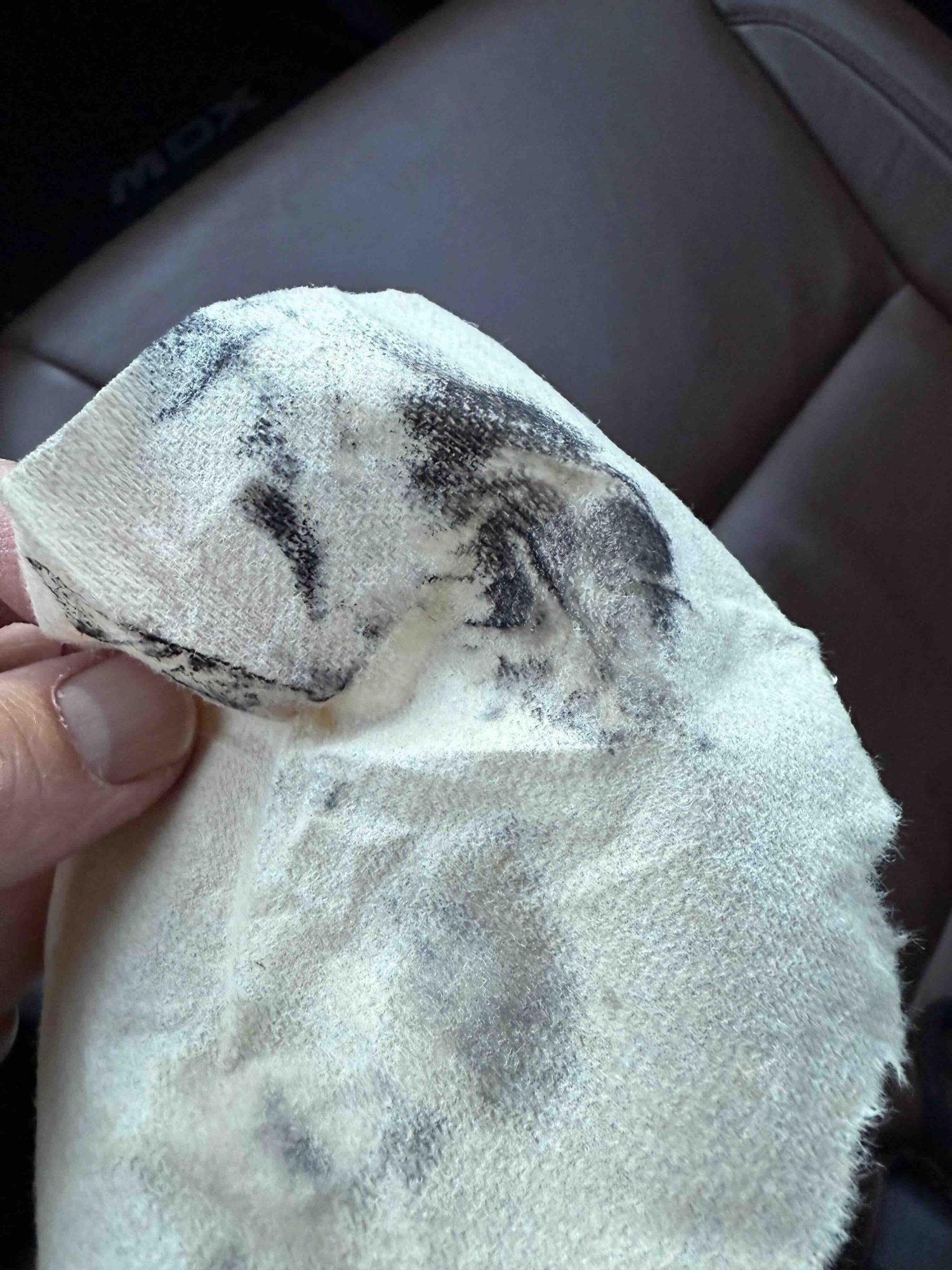 If you put some Purell on napkin, and then rub it on the case, the black dye stains the napkin easily.