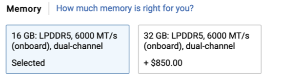 Dell doesn't have a 24 GB RAM option. They only have 32 GB, for an extra $850. At the very least, I think we can say the extra 8 GB of RAM on the MBP is worth $100 or $200.