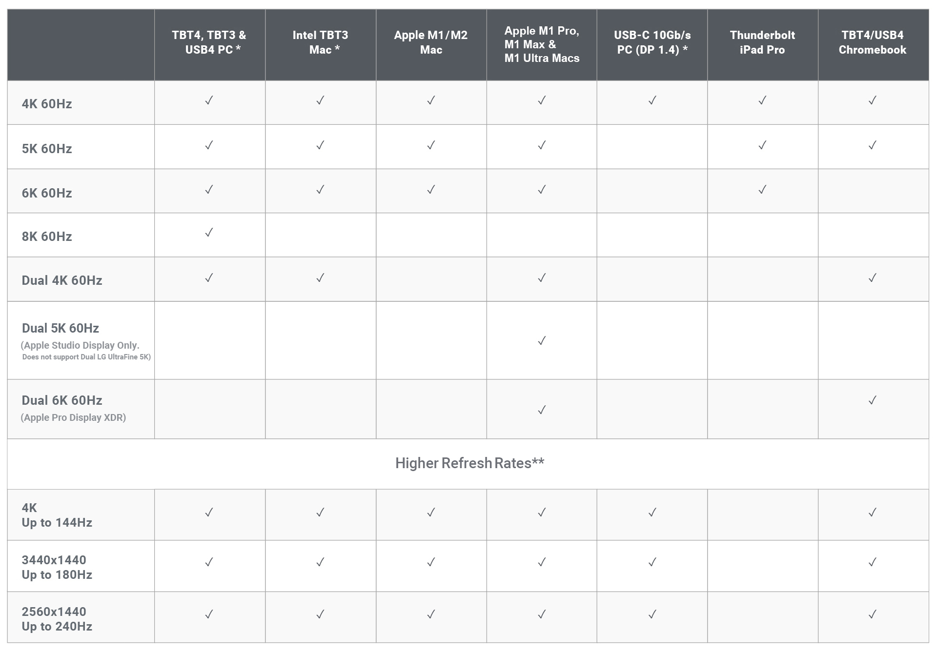 - If connected to the dock via USB-C, I can only use the LG @ 30Hz. There is no option to increase the refresh rate, it's locked. Tried multiple cables, no love.