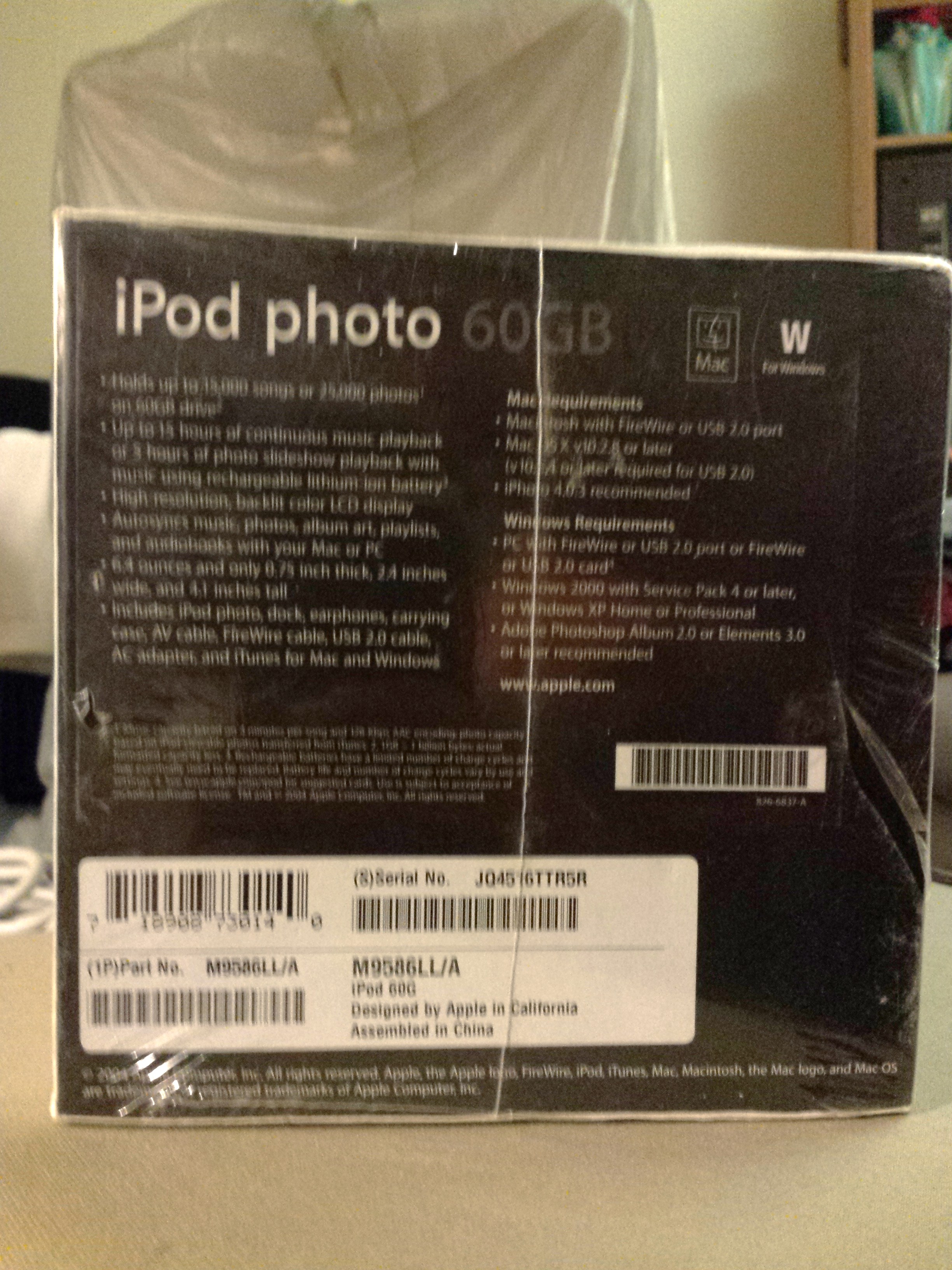 Yes, I also would be glad to see the photo of the box - I know at least 3 possible modifications of the 60GB iPod 2004, would be nice to see which one do you have.[doublepost=1463196114][/doublepost]I have this exact ipod 60gb photo 2004 factory sealed perfect box.