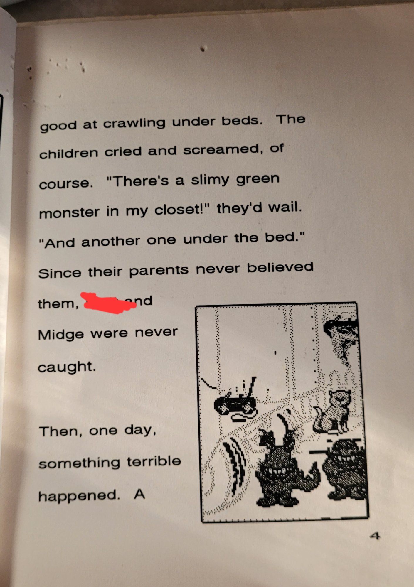 The good news is that I would think someone being able to tell what it is would be fairly likely as I have pictures to provide. The game was essentially a storybook creator but I don't know if it went outside the scope of the story my class created along with me, which was a funny story using friendly monsters as the protagonists, one of which IIRC you inserted your own name into. I believe the story came for the most part pre-written but allowed small sections where you could either typenin your own words or select from a small assortment of phrase options. There are a small handful of games that seem to fit this description online (My Favorite Monster, Storybook Weaver, etc.) but none of them seem to match what I have here. But since I have physical evidence here I know this is a real game and that this isn't some Mandela effect thing, lol.