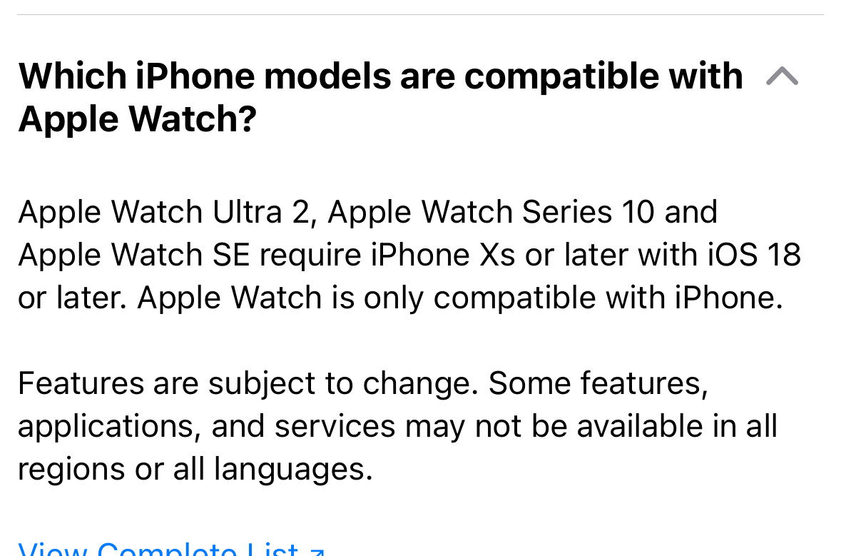 meeebee said: I am interested in buying the new AW 10 but I only have iphone X, which doesn't take ios18. Am I out of luck unless I update to a new iphone? Click to expand... Sadly, yes. It needs XS or newer and ios18. This is from Apple’s site: