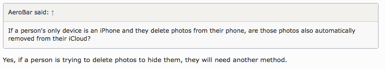 If a person's only device is an iPhone and they delete photos from their phone, are those photos also automatically removed from their iCloud?