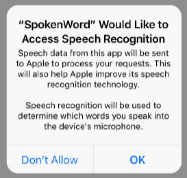 I should mention that Google is asking for generic microphone permissions while Apple is asking specifically for permission for the app to use their Speech Recognition framework. Google just wants the mic on and its just assumed its to use their Speech API, which is a fair assessment IMO.