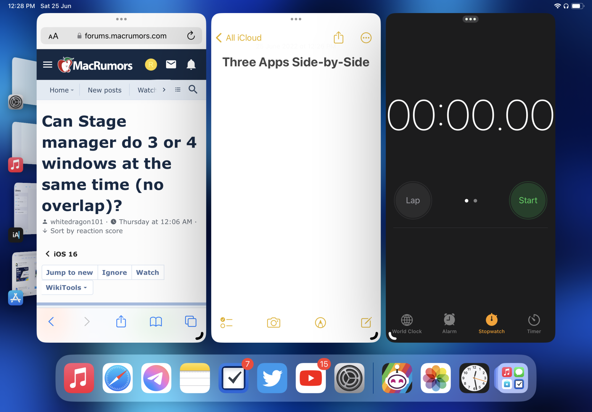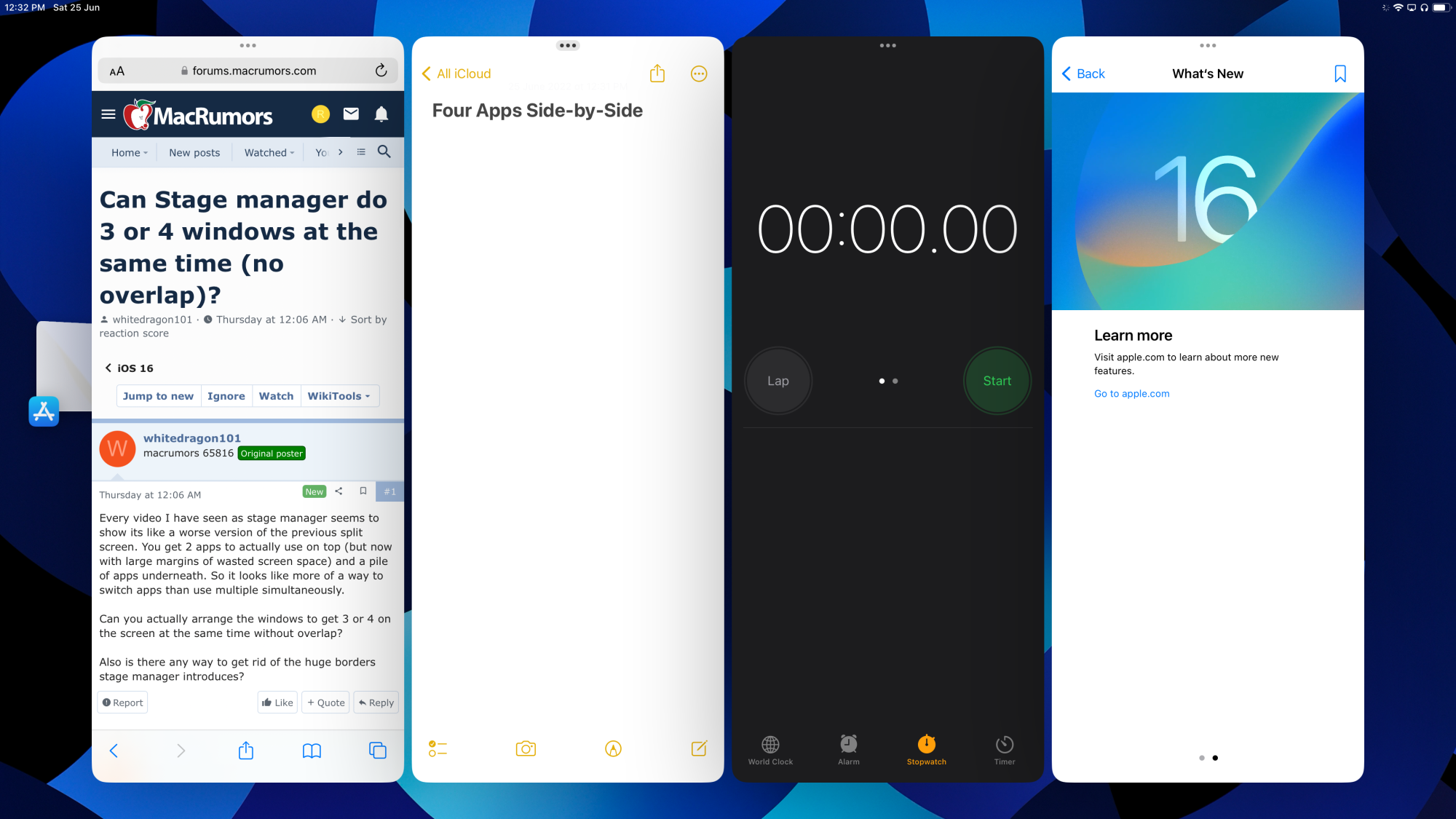 Every video I have seen as stage manager seems to show its like a worse version of the previous split screen. You get 2 apps to actually use on top (but now with large margins of wasted screen space) and a pile of apps underneath. So it looks like more of a way to switch apps than use multiple simultaneously.