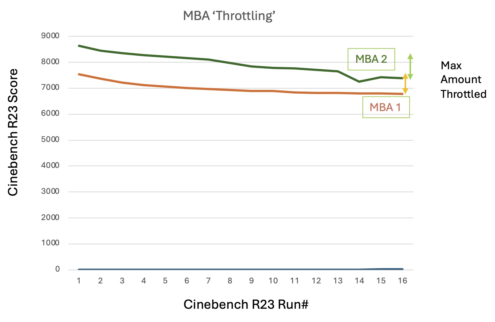 Maybe it's because the graph shows MBA1 vs. MBA2. If it's about throttling I would expect MBA vs. MBP.