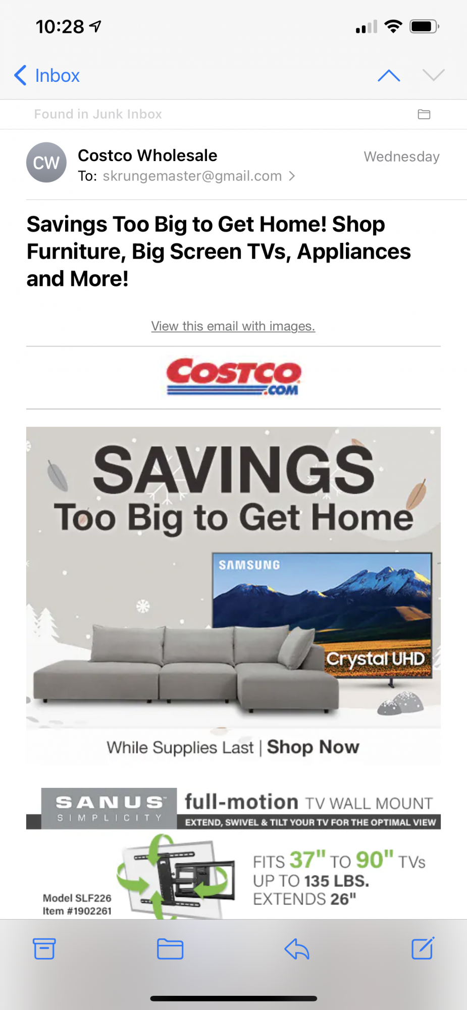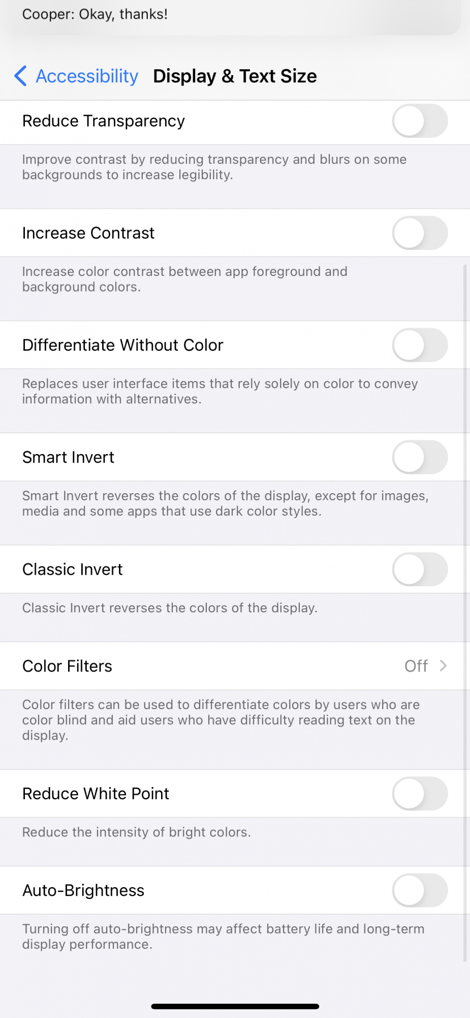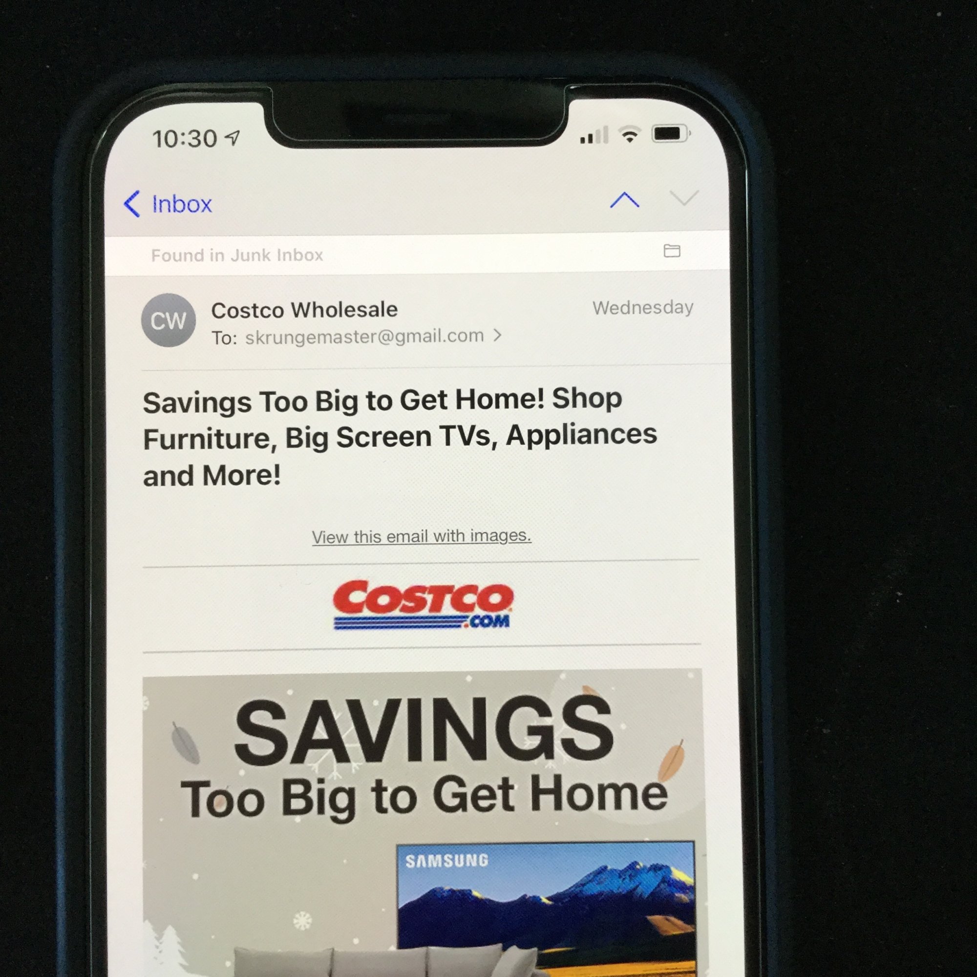 The "Found in mailbox message" is bright and white while the rest of the screen and all other apps are dim and grey. This does not appear in screenshots.