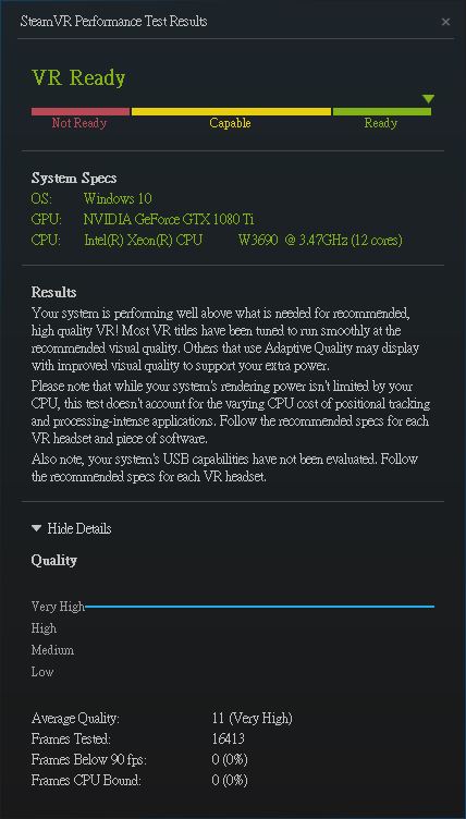 Either way, if I had an office or a private area with a small 2.5m x 2.5m of playspace, then the rift would be just fine. In a larger, more public space, it's by far so much worse to setup and its limitations make themselves very apparent. Setup on the Vive was easier than I could have ever imagined. From the moment I had everything mounted (drilled) to the moment I was in the Vive "Home" was about 10 minutes.