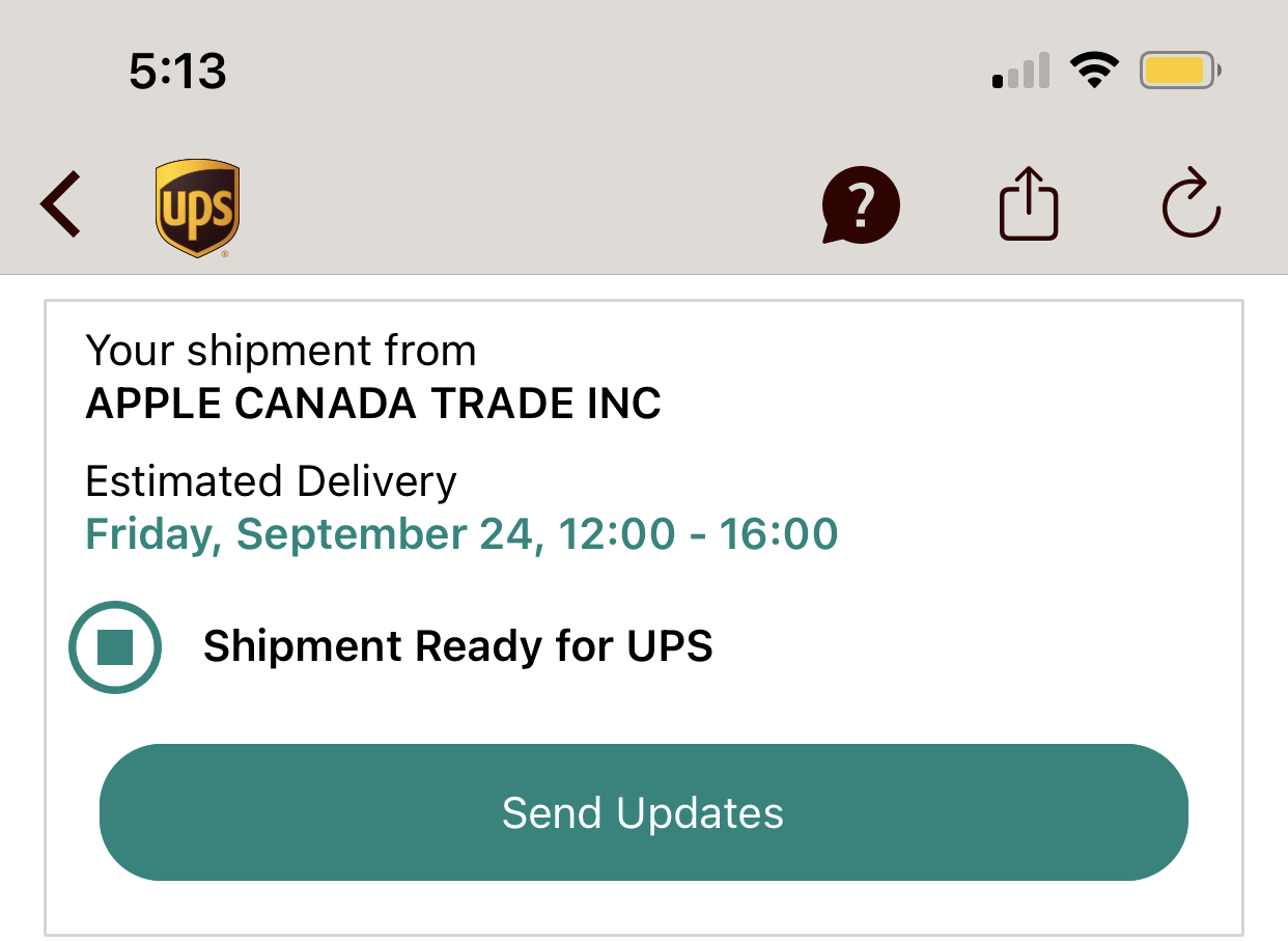 I'm not getting any additional information from UPS... although Apple still says expected delivery is Sep 24. I'm sure it'll arrive on time, I'm just being obsessive ;PI used UPS app, it’s giving more details.