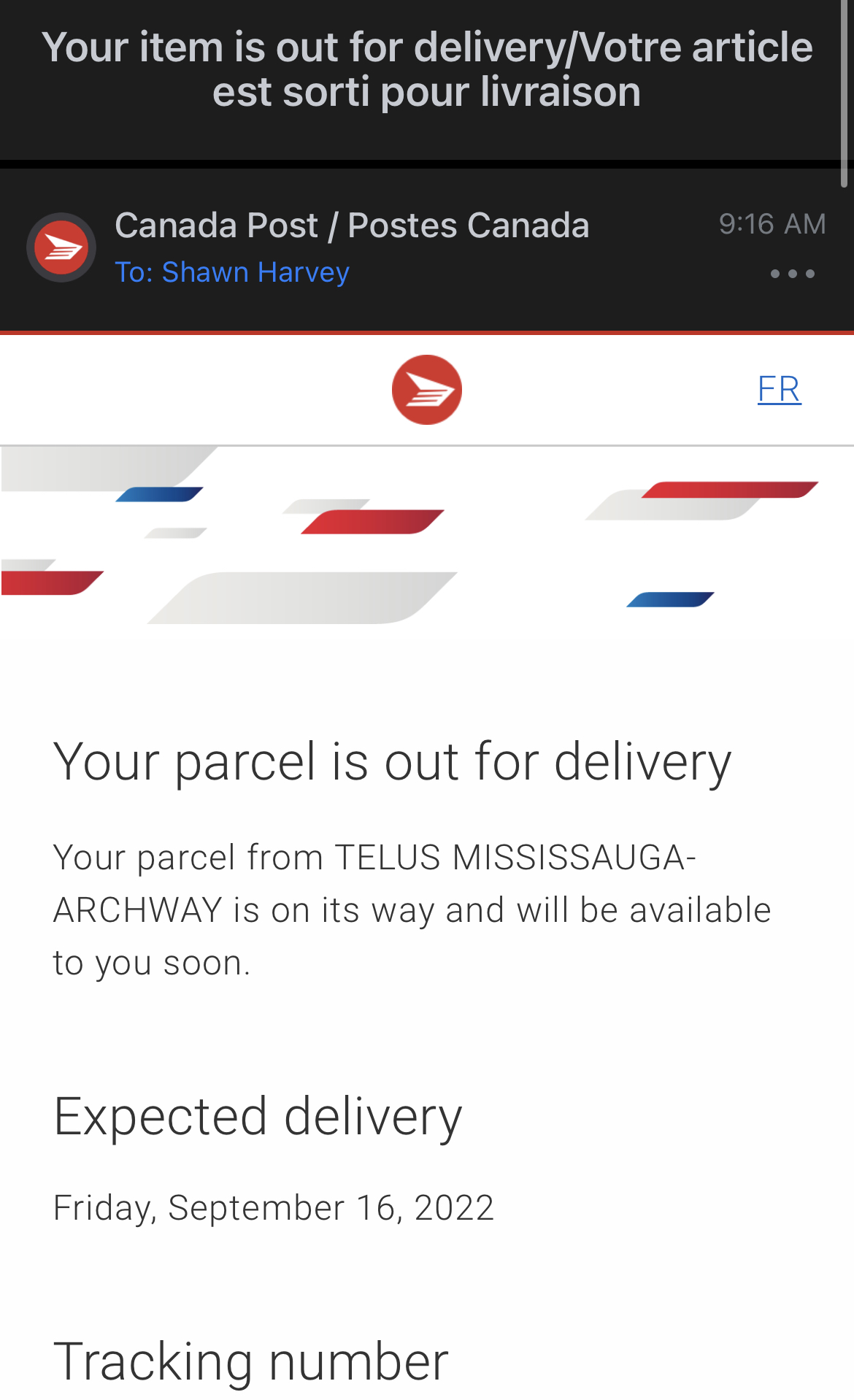 Same here. I think they are very busy today so it won't get updated. I'm sure our iPhones are on the way.My tracking from UPS still sitting as Origin scan in Caledon....