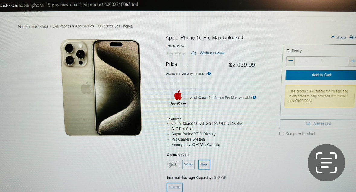 Costco is always a good alternative! You can get up to 4% back (2% Executive + 2% with CIBC Costco Mastercard).If someone needs new iphones quicker than Oct/Nov delivery date, could also check Costco. All 15/15 pro are available for presell now, i.e 15 pro max grey 512gb delivery date between 09-22 to 09-29.