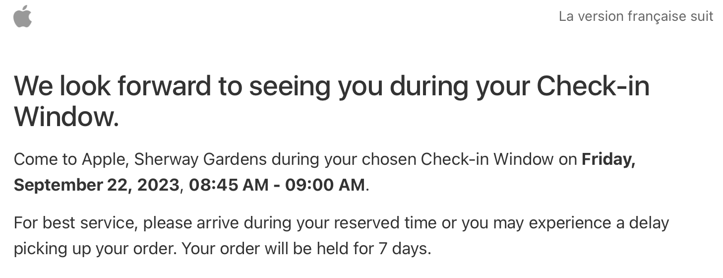 Well I just got the Pickup check-in email 30 minutes ago, so we're getting ready to goMine is in the same boat, Apple support said this is normal and should update once the store receives my phone.
