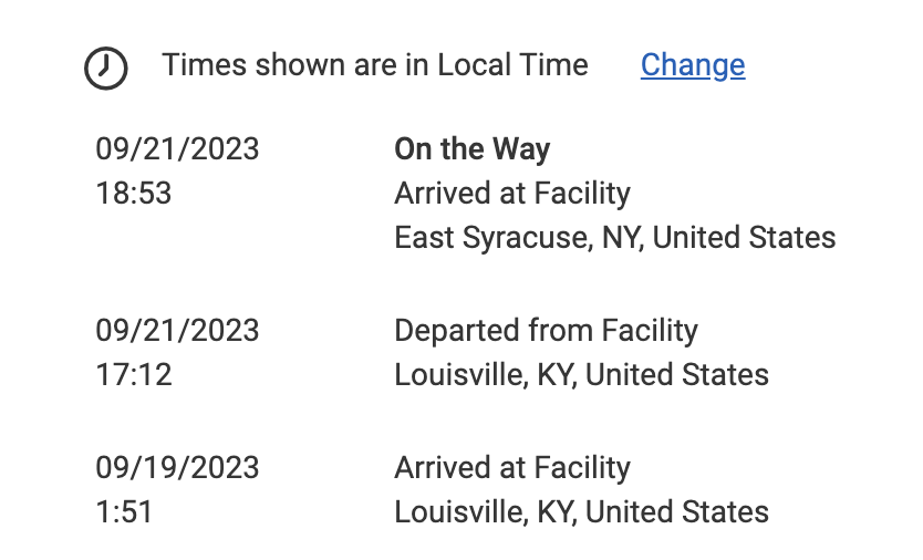 Mine just leftAnyone located in Québec that still has theirs at Louiseville, KY (1:51am - Sept.19) update? Mine hasn't left yet.