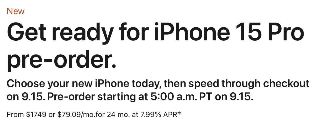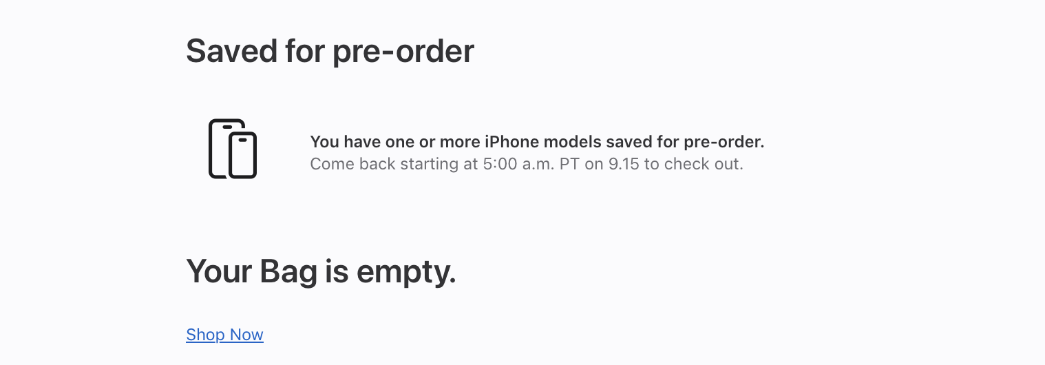 Looks like Apple.ca is now updated showing: "Choose your new iPhone today, then speed through checkout on 9.15. Pre‑order starting at 5:00 a.m. PT on 9.15."