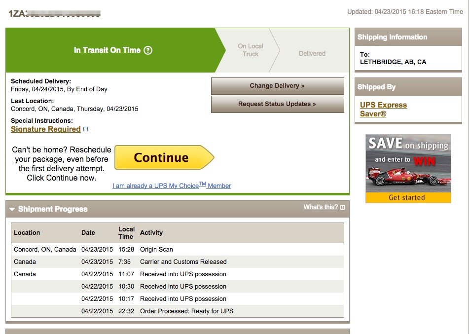 UPS Canada 04/28/2015 7:15 Carrier and Customs Released