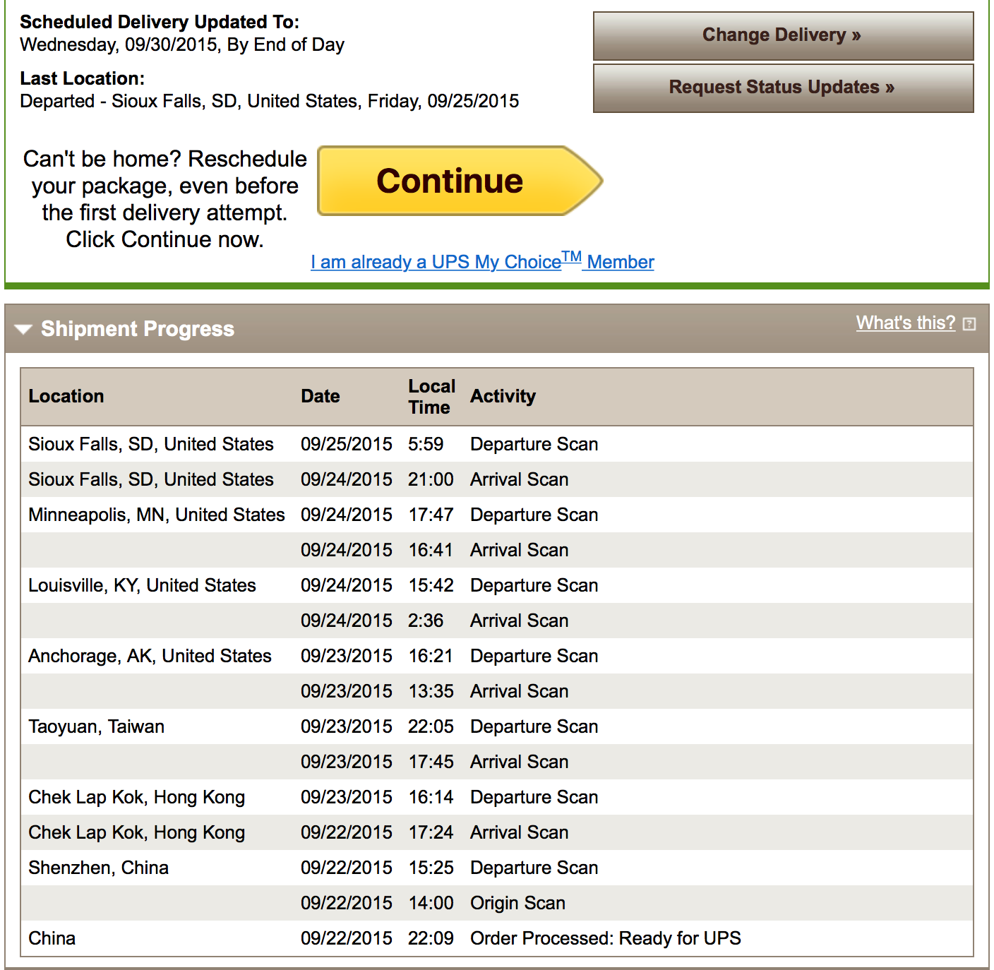 Well going to bed last night my phone had departed Minneapolis and UPS still said delivers Friday....waking up this AM....things have taken a drastic turn for the worse