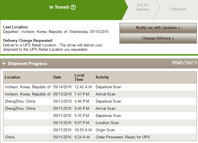 Thanks for this. Last year, my 6s was in Concord early Friday am and wasn't delivered till Saturday am. I'll keep posting my UPS changes, anything to pass the time till Friday.For sure!! Just checked. Set to leave Korea in about 10 minutes. Same flight (UPS99) from Korea to Anchorage and then Louisville. Scheduled to arrive in Louisville at 12:49AM tomorrow. If it doesn't get on the flight today from Korea, then we will be on the same flights tomorrow. This is where mine got delayed last year. It missed the flight and I had to wait until Monday to receive. Fingers crossed if all goes well they will be in Ontario tomorrow ready to go on Friday.