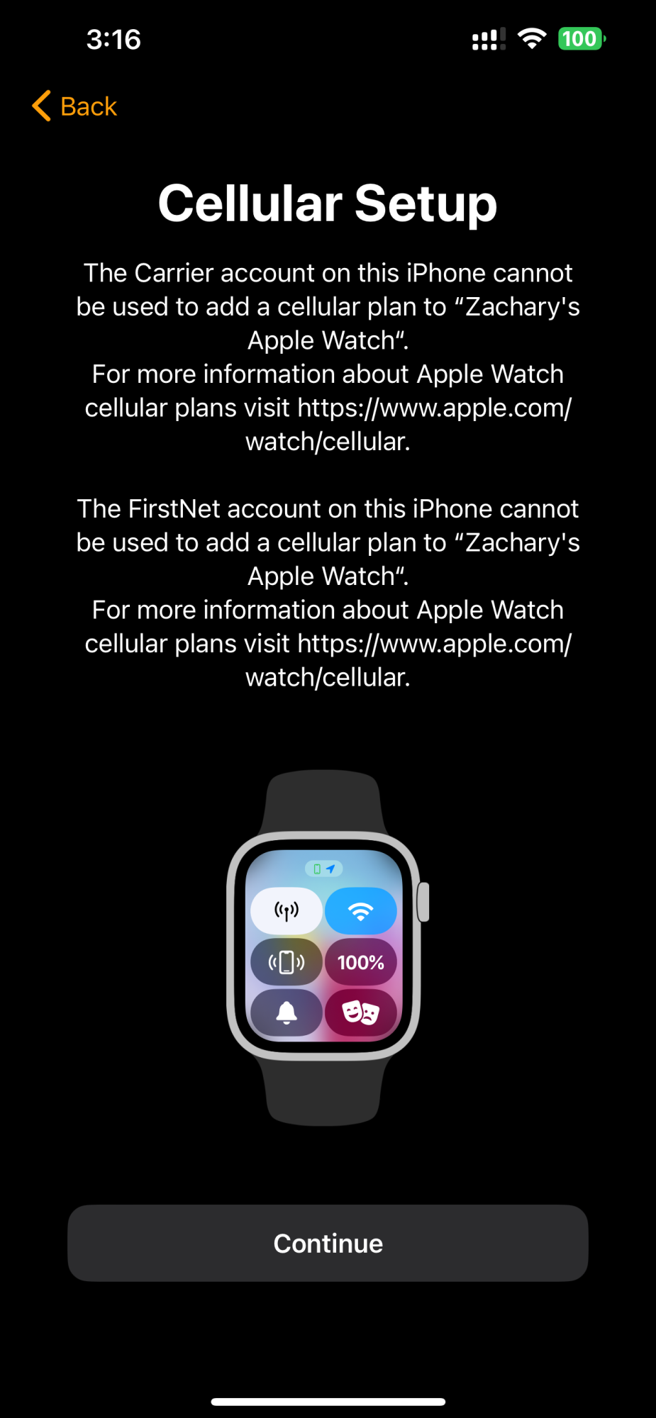 - During the initial Apple Watch setup wizard, the Cellular step is unavailable: