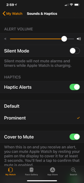 I was getting everything set up on my new Series 4 when I ran into a weird issue. In the "Sounds & Haptics" menu of the Watch App I try to change the Haptic Strength setting slider bar. It seems like it takes and the watch will vibrate but after a couple seconds the bar reverts back to the lowest setting again. It is like the watch is refusing to accept the setting. Anyone else experience this?