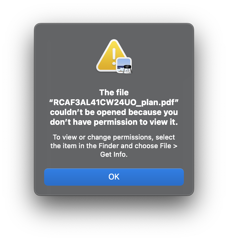 I've been experiencing an intermittent issue for the last 6 months or so. About half the time I download something from Safari (PDF, JPEG, etc.) I get the attached error message when I go to open the file. I have checked the settings and do not see anything wrong. I have restarted my machine, restarted Finder, restarted Safari... I'm not sure what else to do. Anyone have any experience with this or tips?