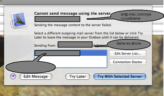Cannot send message using the server smtp.mac.com:firstpartofmyemailaddress
