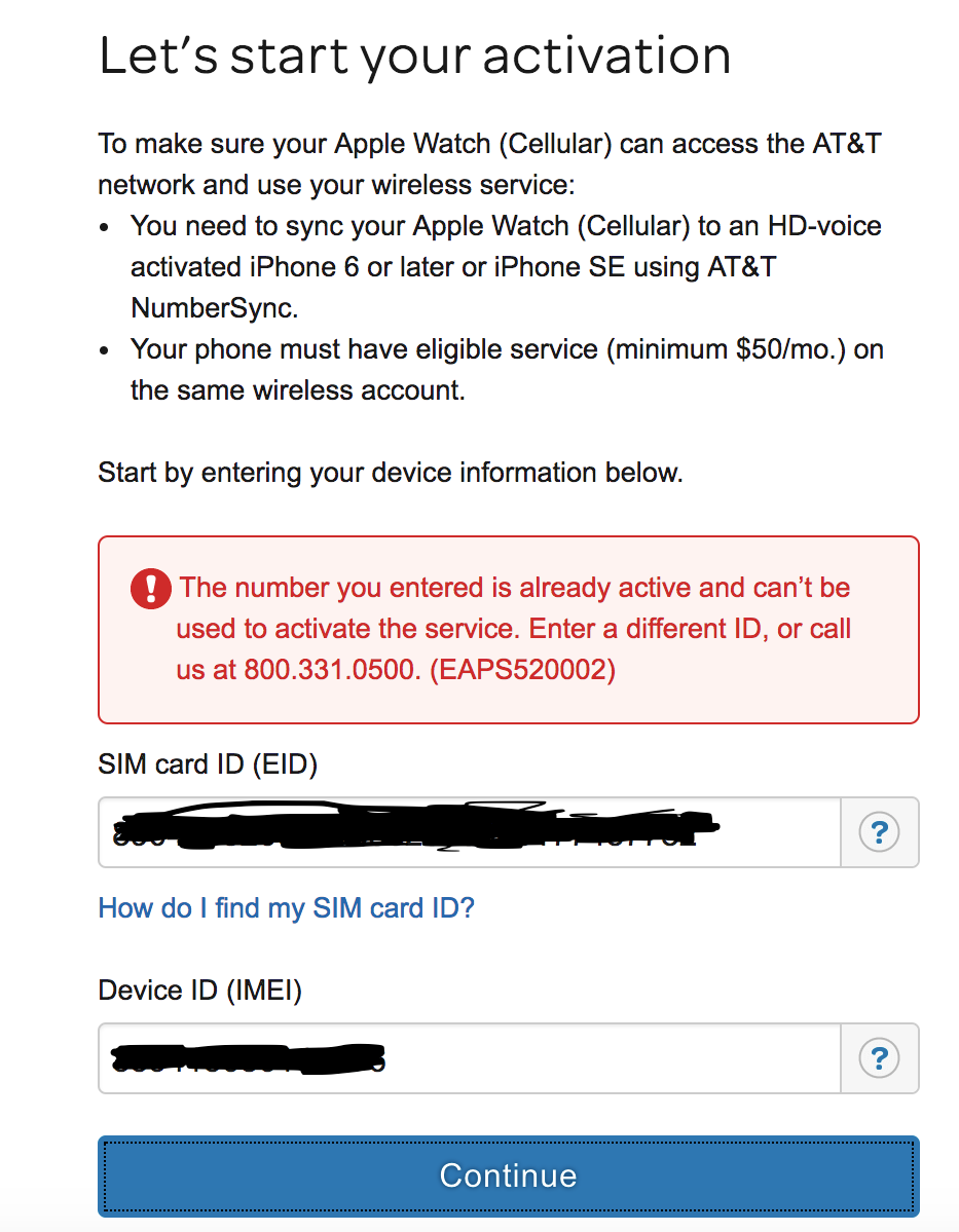 ATT: •The set up flow is programmed to ignore ICCIDs/eSIMs that are in Unavailable status.