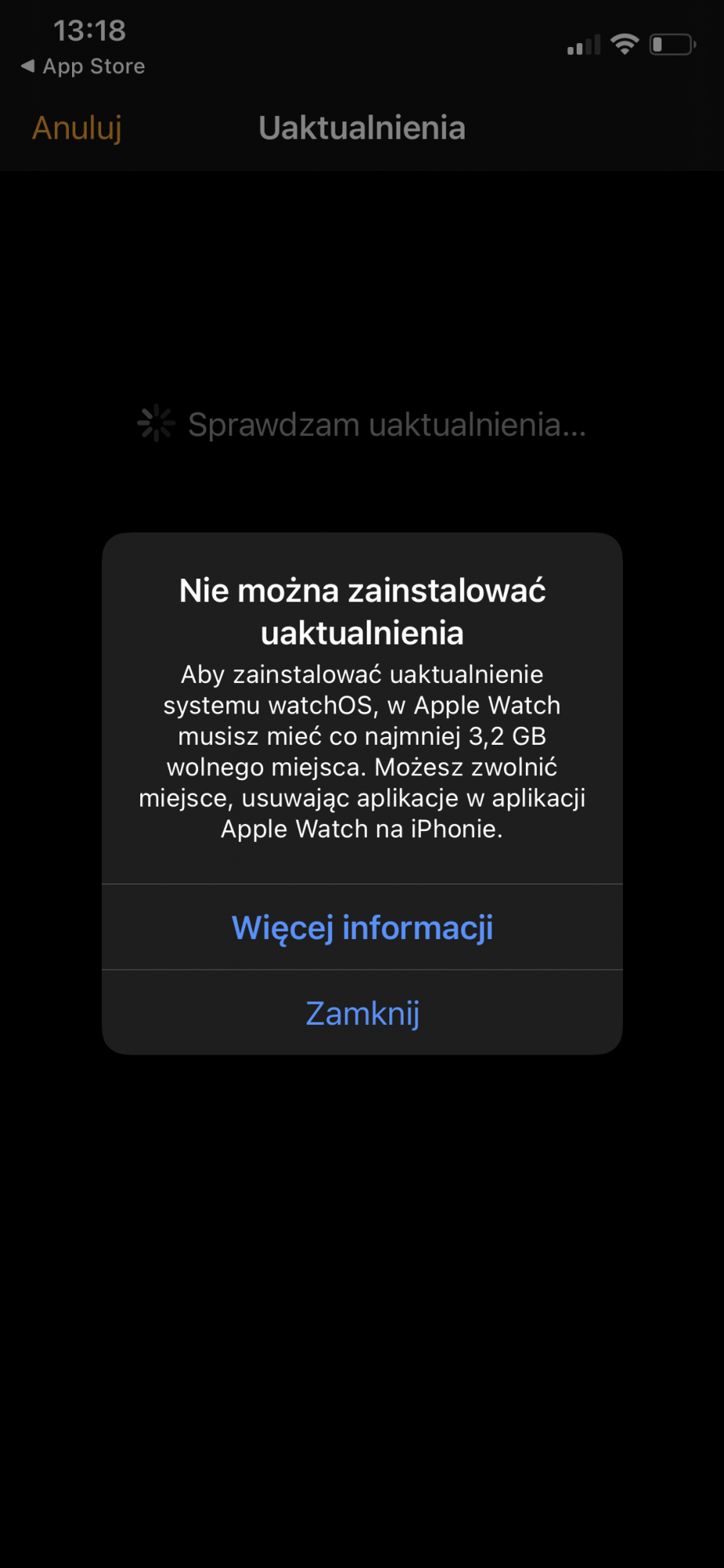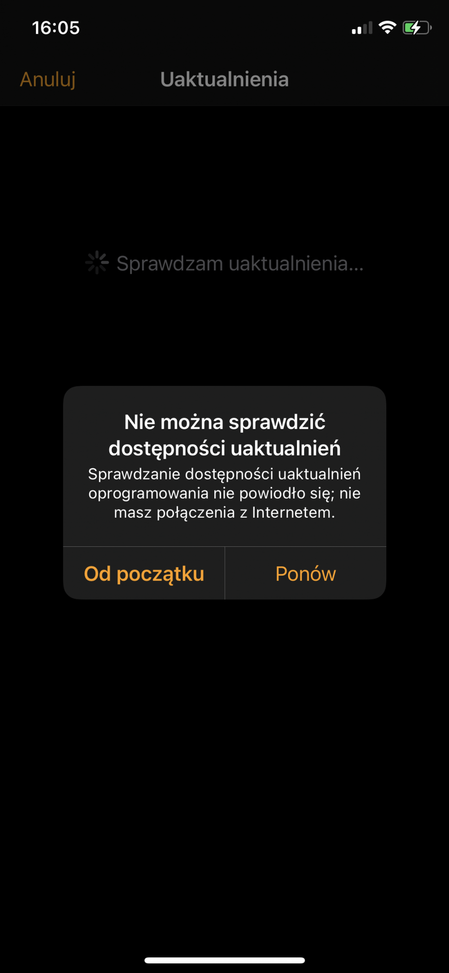Screen in Polish but first says that cannot check updates, secound no storage for instal update.