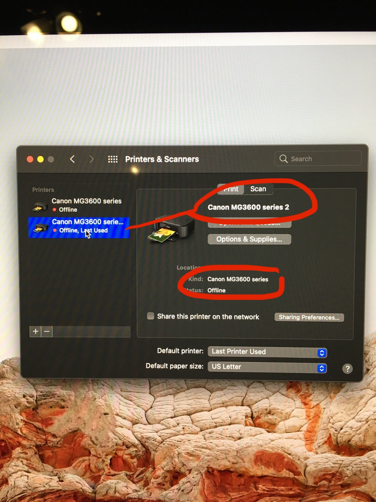 Trying to to set up my pixma mg3620 to my new 2020 iMac. Couldn’t do it wirelessly so I went usb. Can someone tell me if I should have both of these showing up? They are both different. Not sure if I did something twice. Thanks.